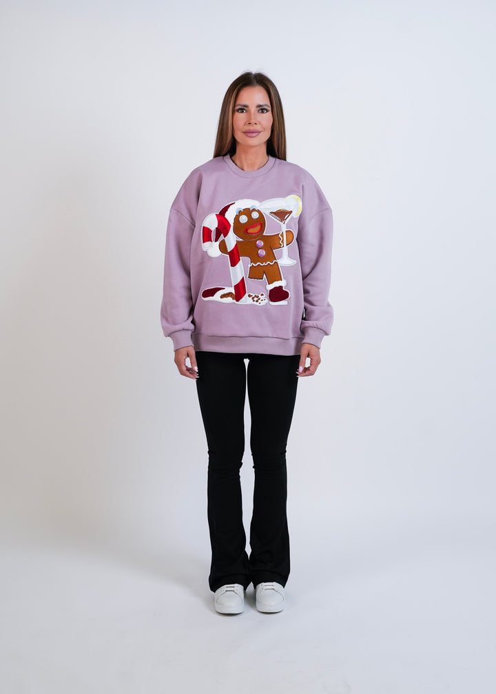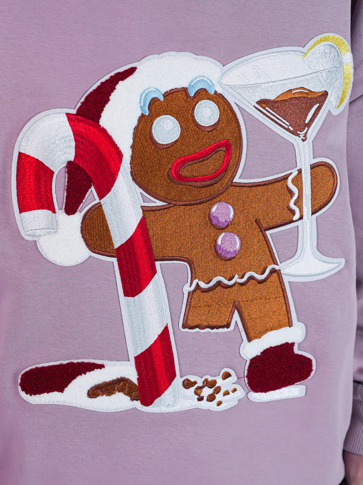 Mikina, která okamžitě přitáhne pozornost – díky mega 3D výšivce Perníčka, který si užívá svátky přesně tak, jak by měl: s cukrovou hůlkou v jedné ruce a drinkem v druhé.