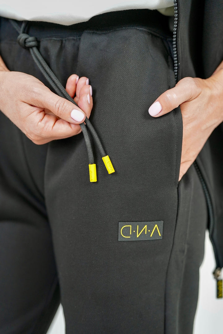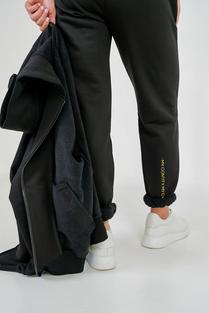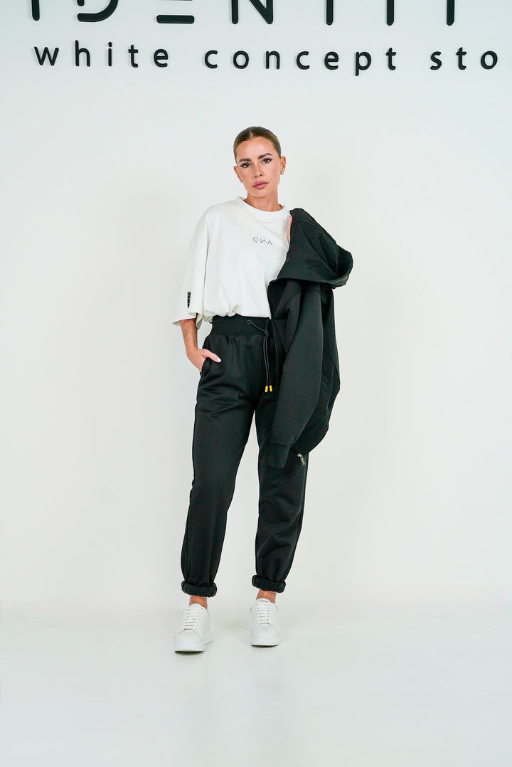 Women's high-waisted sweatpants from the significant IDENTITY collection with a medium weight represent a unique timeless style and comfort. IDENTITY knitwear is very pleasant to the touch, characterized by the highest quality of workmanship and dense knitting. The material composition of the fabric consists of a high proportion of premium cotton and a smaller proportion of polyester, thanks to which the sweatpants keep their shape and do not lose their color even after multiple washings.