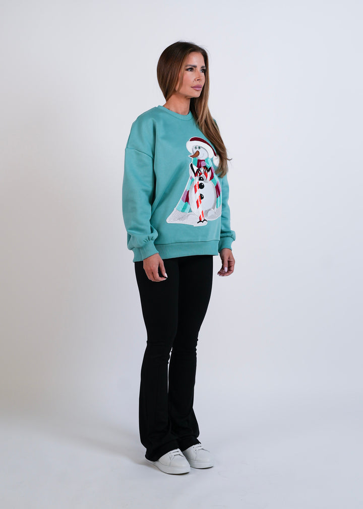 Tyrkysová barva působí svěže, moderně a sedí komukoli, kdo nechce být přes svátky nudný. Mikina je měkká, pohodlná a připravená na cokoliv: od vánočního punče po zimní chill doma.